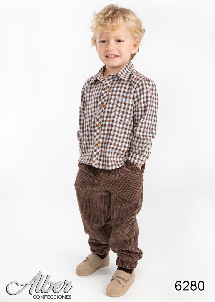 Conjunto camisa de cuadros + pantalón de pana.