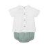 Conjunto de camisa de plumeti con cuello bebé y bragapañal bambula con botones y bolsillos falsos