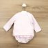 Conjunto compuesto por braga pañal con volantes y sudadera felpa rosa maquillaje.
