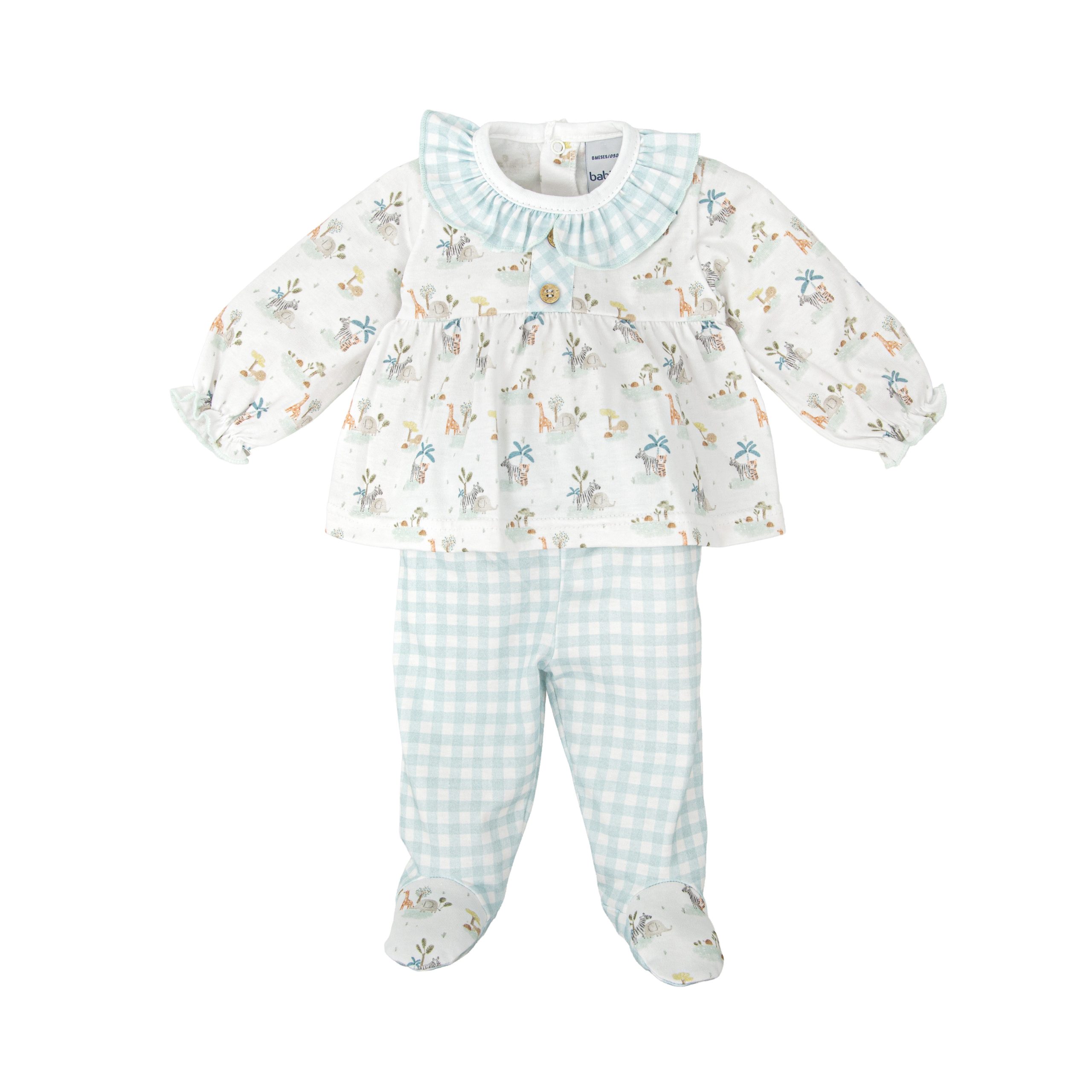 Conjunto camiseta cuello volante y polaina de algodón 100% para la primera puesta