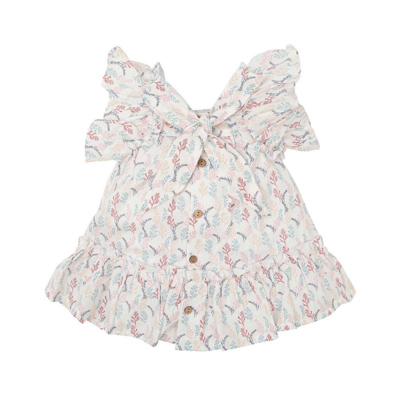 Vestido de niña en color unico elaborado con el mejor algodón con motivos florales