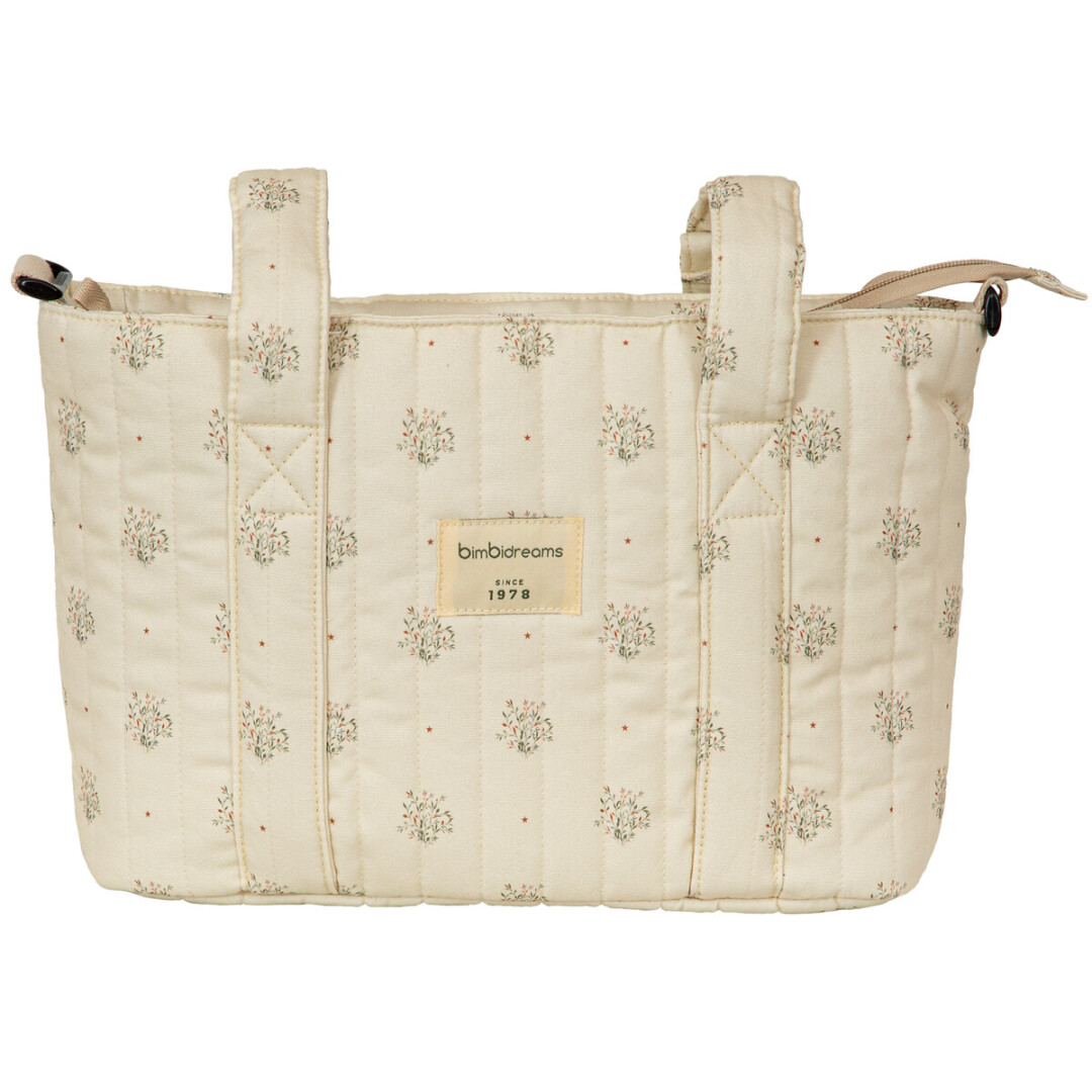 Incluye asas cortas para colgar en cochecito y asa larga para usar de bandolera.
