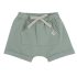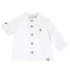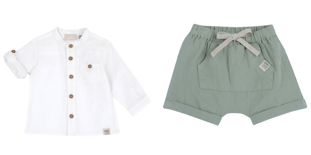 Conjunto para niño con camisa blanca cuello maho y short en verde, tejidos de lino y bambula.