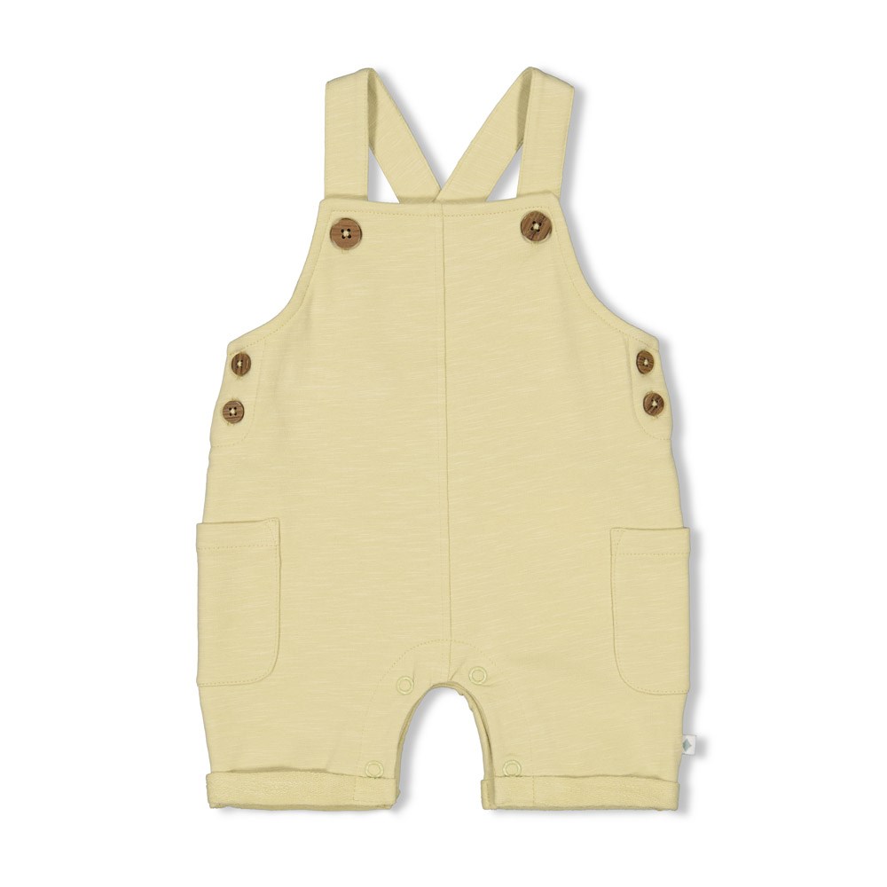 Peto algodón con apertura en el bajo para facilitar el cambio de pañal. Tirantes con doble botón para poder alargar la talla.