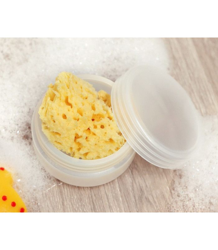 Esponja natural caribeña, muy absorbente y suave. Su tamaño es perfecto para recién nacido e incluye una cajita para su almacenamiento y transporte más seguro e higiénico.