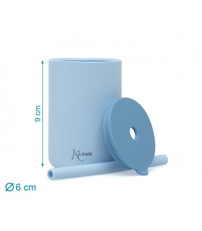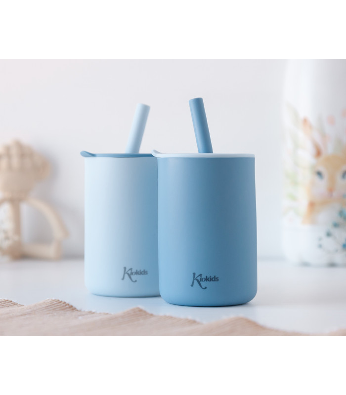 Kiokids set 2 vasos silicona azul con pajita