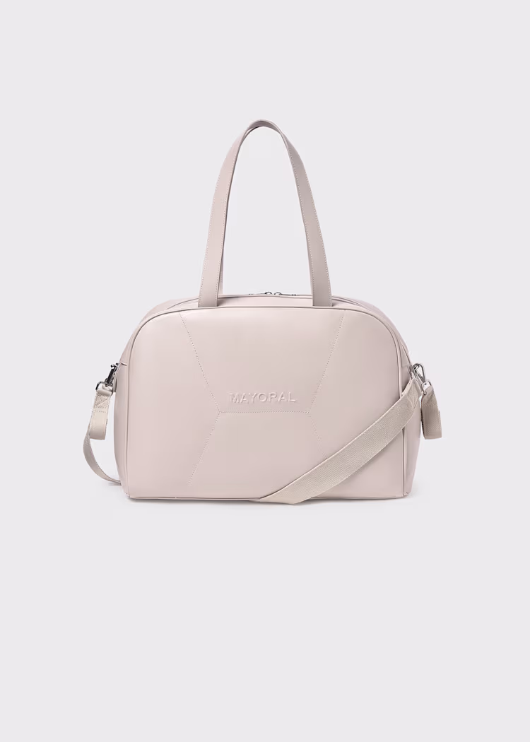 Practico bolso maternal en polipiel, compartimento interno térmico para biberones y porta chupetes.