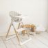 La trona de madera con hamaca para recién nacidos permite que el bebé esté cerca de la familia durante las comidas, lo que fomenta la interacción y la comunicación en el hogar. Además, la vida útil de la trona se alarga gracias a este complemento que se usa desde la llegada del nuevo  miembro de la familia.