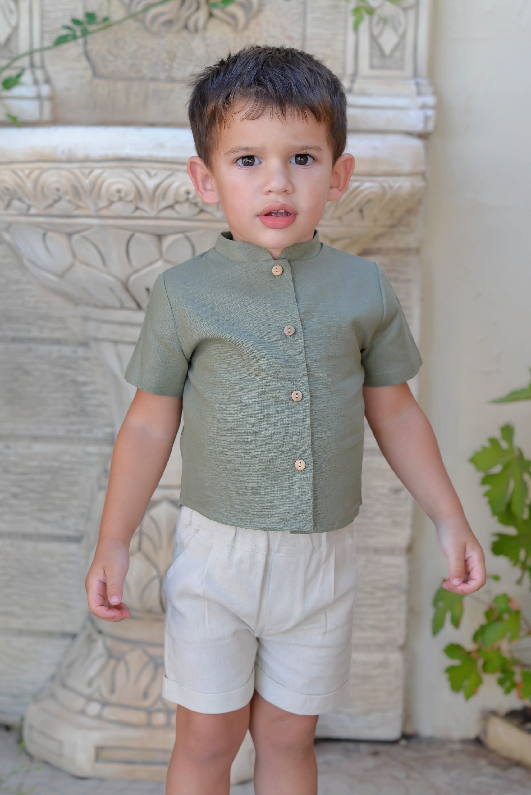 Pequeños Piratas conjunto niño lino oliva Pequeños Piratas conjunto niño lino oliva