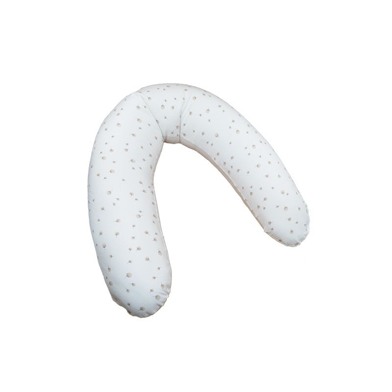 DESCRIPCIÓN  funda de punto de algodón ORGANICO (HILO CERTIFICADO POR GOTS) extraíble. Lo que hace único en el mercado es su alma de punto de algodón 100%con microperlas. Con este tejido conseguimos un tacto excepcional que se adapta mejor al cuerpo para el descanso de la embarazada y posteriormente la lactancia Tamaño: 1,90 contorno Instrucciones de lavado: Interior: Lavado a mano agua fría. Exterior: Lavar a máquina 30°. No necesita plancha, apto para secadora.