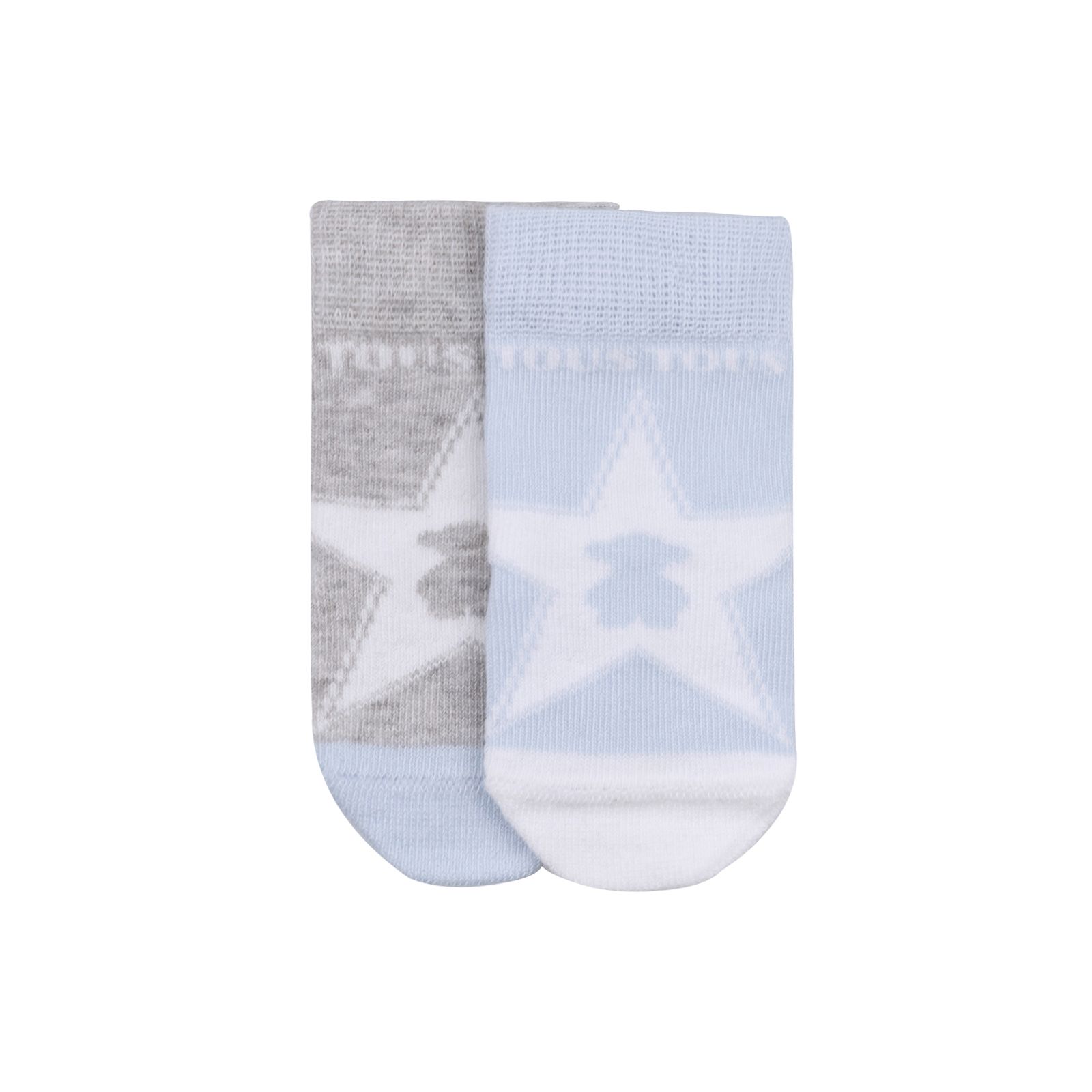 Set Baby TOUS de dos pares de calcetines de algodón con oso y estrellas tejidos. Puños acanalados. COMPOSICIÓN: 80% Algodón 15% Poliamida 5% Elastano. Color azul celeste.