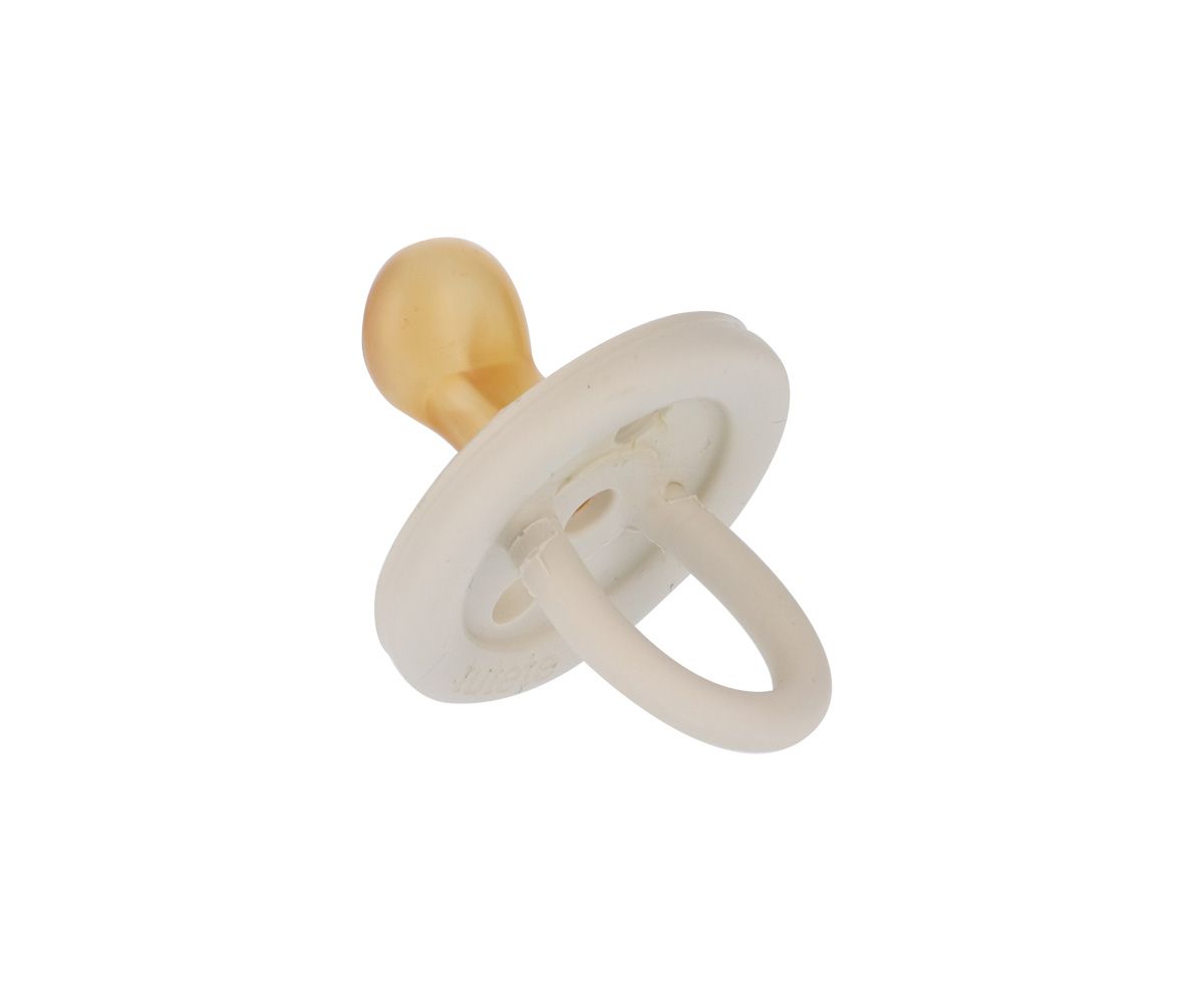 2 chupetes de caucho natural blandos y flexibles. El chupete está hecho de una sola pieza para mayor seguridad e higiene.
